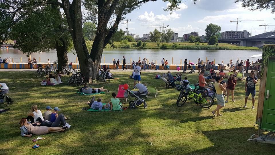 W dniach od 15 lipca do 10 września na Bulwarze Kurlandzkim w okolicach mostu Kotlarskiego Zarząd Zieleni Miejskiej, będzie organizatorem wakacyjnej strefy plażowania nad Wisłą pn. „PrzyStań na Plaży”. Mamy nadzieję, że uda się nam stworzyć miejsce, które poza rekreacyjną oprawą będzie miało charakter miejsca spotkań, inspiracji i wymiany doświadczeń. Cała strefa „PrzyStań na plaży” będzie zorganizowana wokół przeszklonego kontenera z drewnianym tarasem na ziemi i na dachu. Rozstawione będą leżaki, bulodrom, hamaki, huśtawki. Będzie również boisko do siatkówki i badmintona. Nad brzegiem Wisły powstanie piaszczysta plaża, będą odbywały się m.in. zajęcia fitness, będzie można również wypocząć na wypożyczonym od nas kocu lub leżaku. W pobliżu staną foodtrucki oferujące jedzenie oraz napoje. W gorące dni planujemy uruchomienie kurtyny wodnej. Popołudniami mieszkańcy będą mogli zrelaksować się przy muzyce, wziąć udział w różnego rodzaju warsztatach dla dorosłych i dla dzieci. Chcemy bowiem poprzez tą akcję zachęcać krakowian do działania, poszukiwania i rozwoju, a czas wakacji to czas kiedy zwalniamy i więcej w nas może chęci i otwartości na nowe.