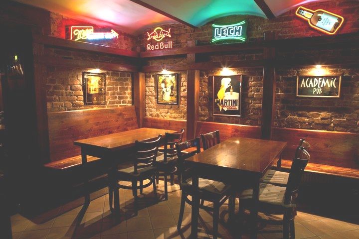 Low prices, cosy interior and friendly atmosphere are what distinguish them. It has one of the best locations and interesting design. You can taste many kinds of beer while having a great time here. Academic Pub is the place everyone should visit!