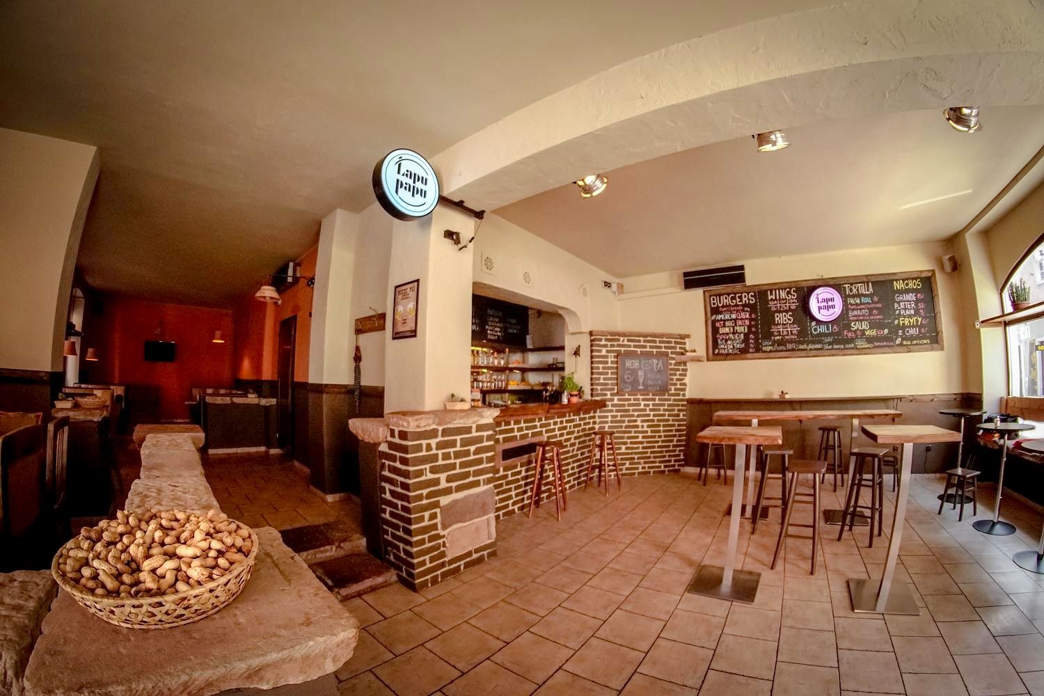 Łapu-Papu GrillBar serves traditional American and Mexican dishes, including a wide variety of delicious burgers, sauce-smothered wings and ribs, as well as loaded nachos and burritos in a very casual gastropub atmosphere.