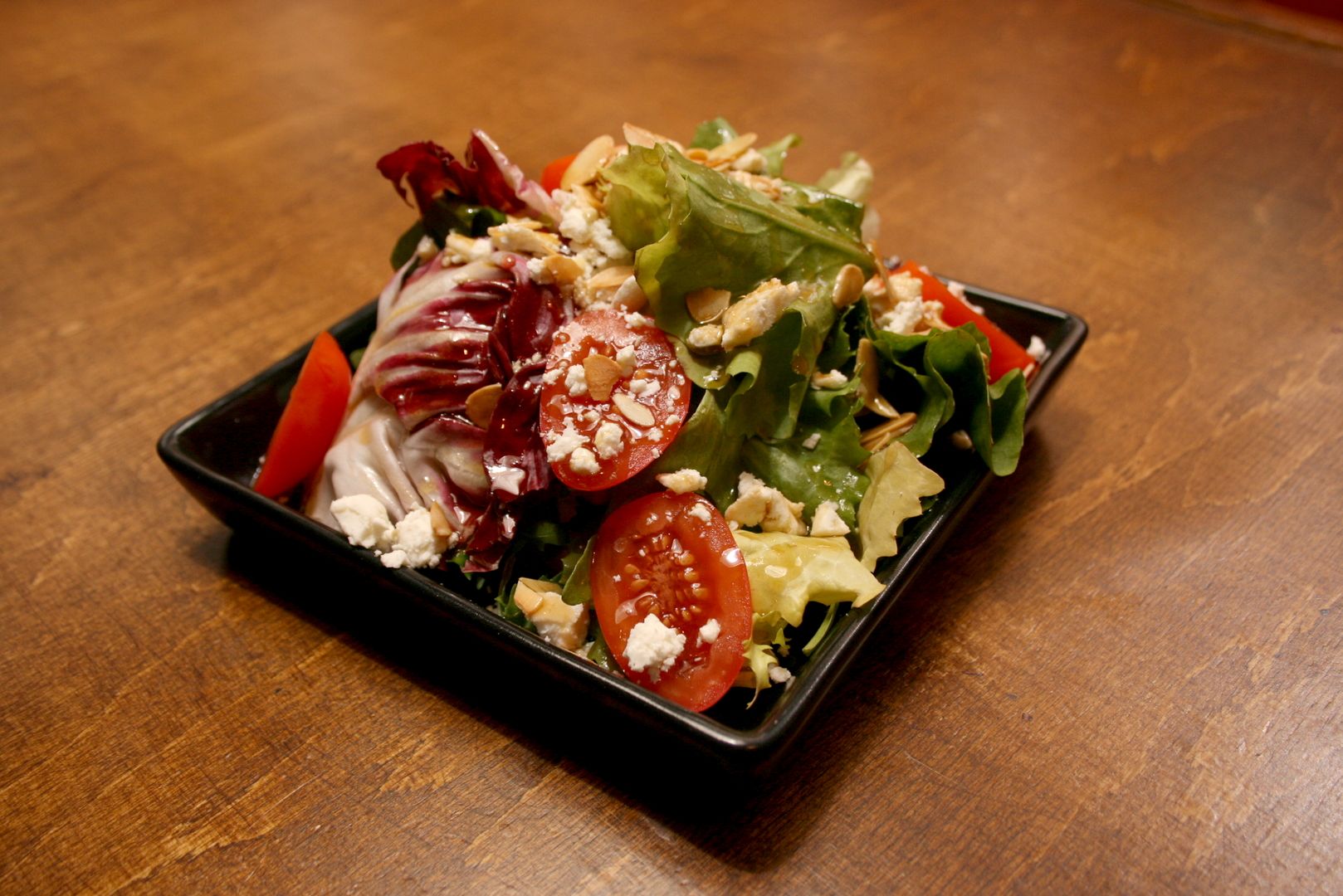 prażone migdały, winegret miodowy