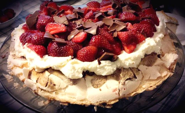 Meringue with mascarpone cream and strawberries
