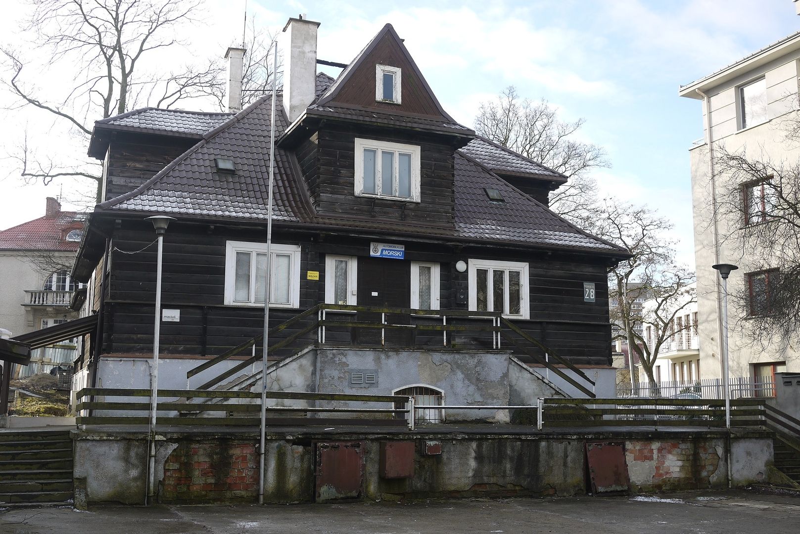 Jeden z nielicznych zachowanych przykładów międzywojennej architektury drewnianej w Gdyni. Budynek ten wzniesiony został w 1930 r. w zmodernizowanym stylu zakopiańskim. Od 1936 r. mieści się tu siedziba Automobilklubu Morskiego, w którego szeregach pierwsze sukcesy odnosił między innymi Krzysztof Hołowczyc. Podczas festiwalu funkcje przewodnika po tym przesiąkniętym historią miejscu pełnić będzie charyzmatyczny Gdynianin Jerzy Piotrowicz, wieloletni prezes klubu.Urząd Miasta Gdyni – Gabinet Wiceprezydenta Gdyni ds. rozwoju Pana Marka Stępy oraz podziemia