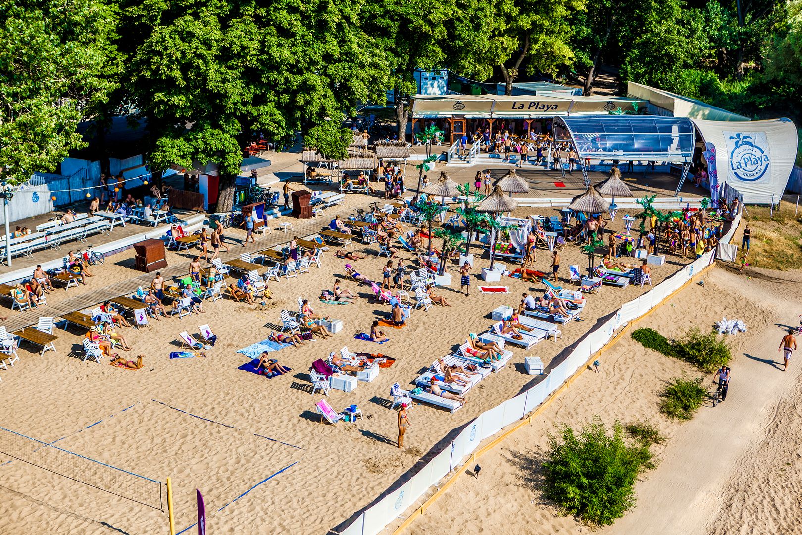 It’s a club – good music, famous DJ-s, drinks and evening chill. During the day unwind in a coastal resort. Be active playing volleyball, badminton, throw frisbee or play boules – all free! Every Sunday dance while Fiesta en La Playa.