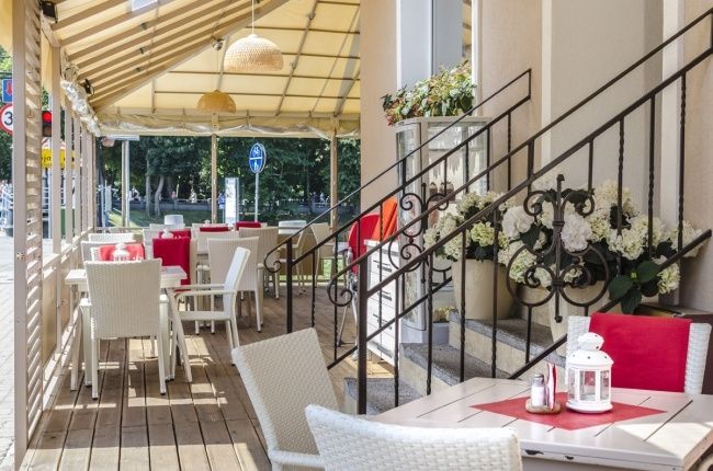 Restauracja oferuje dania z przeróżnych zakątków świata takie jak mazurskie ryby, przeróżne dania z grilla oraz śródziemnomorskie sałatki oraz smaczna pizzę prosto z piecza. Z dobrze położonego ogródka można podziwiać piękną panoramę Kanału Giżyckiego oraz zamek krzyżacki.
