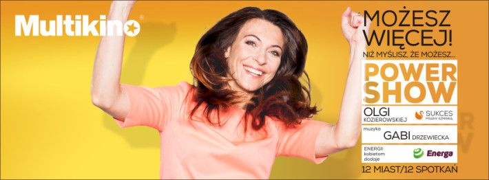 Wzmocnij pokłady wewnętrznej energii podczas spotkań z cyklu Power Show pt. „Możesz więcej niż myślisz, że możesz…„ w Multikinie. Olga Kozierowska stworzyła autorską formułę z myślą o kobietach i dla kobiet. Wybierz się na spotkanie Power Show do wybranego kina sieci Multikino pomiędzy 28 kwietnia a 1 lipca.