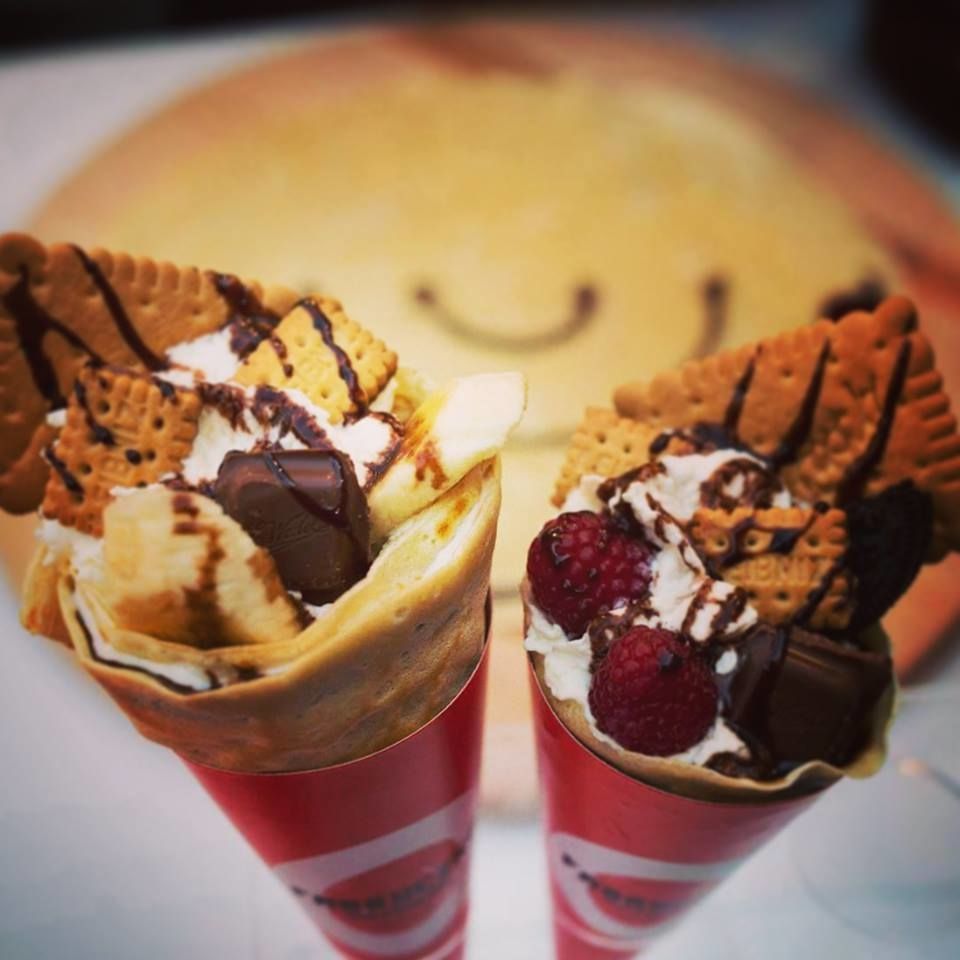 Naleśniki przygotowywane są z przepisu Mamy, który zaskarbi sobie Wasze serca w szybkim czasie. Wnętrze wypełnione jest wszystkim co najsłodsze i warte grzechu. Całość podana w niecodzienny sposób- jako rożek, który zaznajomi Was z Japońską techniką zawijania tego smakołyku.