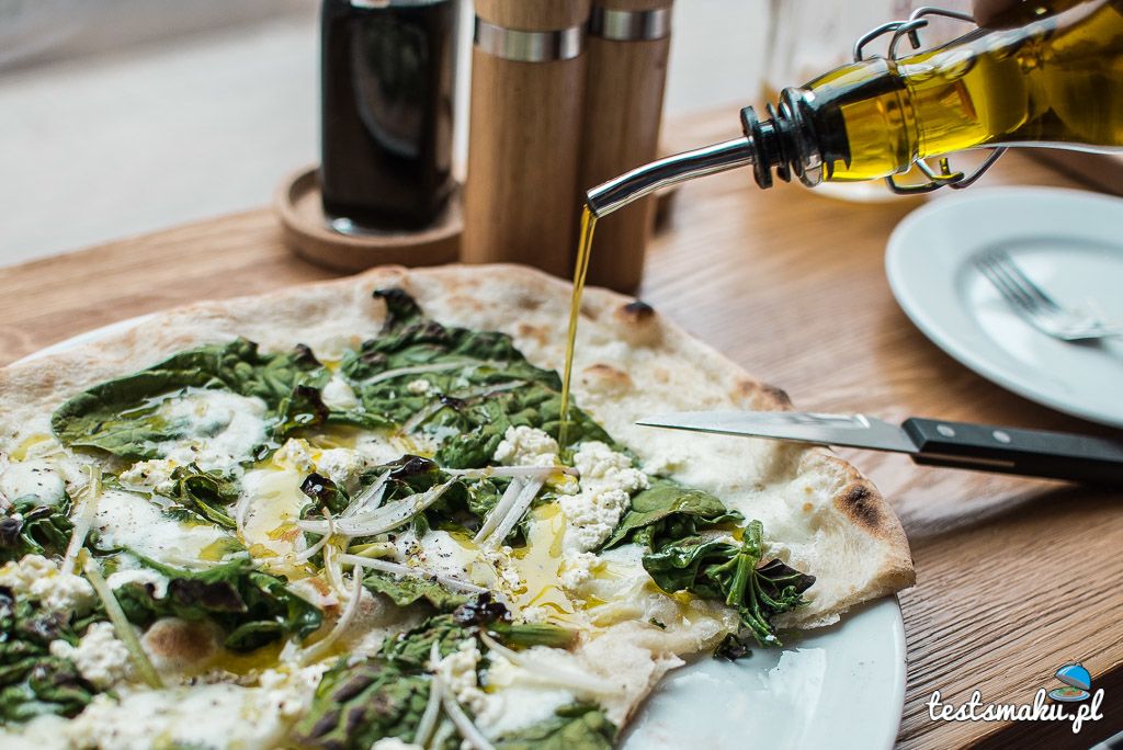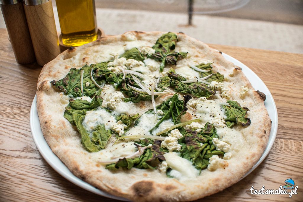 Ciasto świetne. Cieniutkie, dobrze doprawione i doskonale wypieczone. I ten aromat pieca opalanego drewnem, którego nie da się zastąpić żadnymi, nawet najbardziej wymyślnymi przyprawami. Liście szpinaku i mozzarella idealnie współgrały z pysznym ciastem. Dodatek oliwy, jak zawsze, wzbogacił smak. Pizza pierwsza klasa.