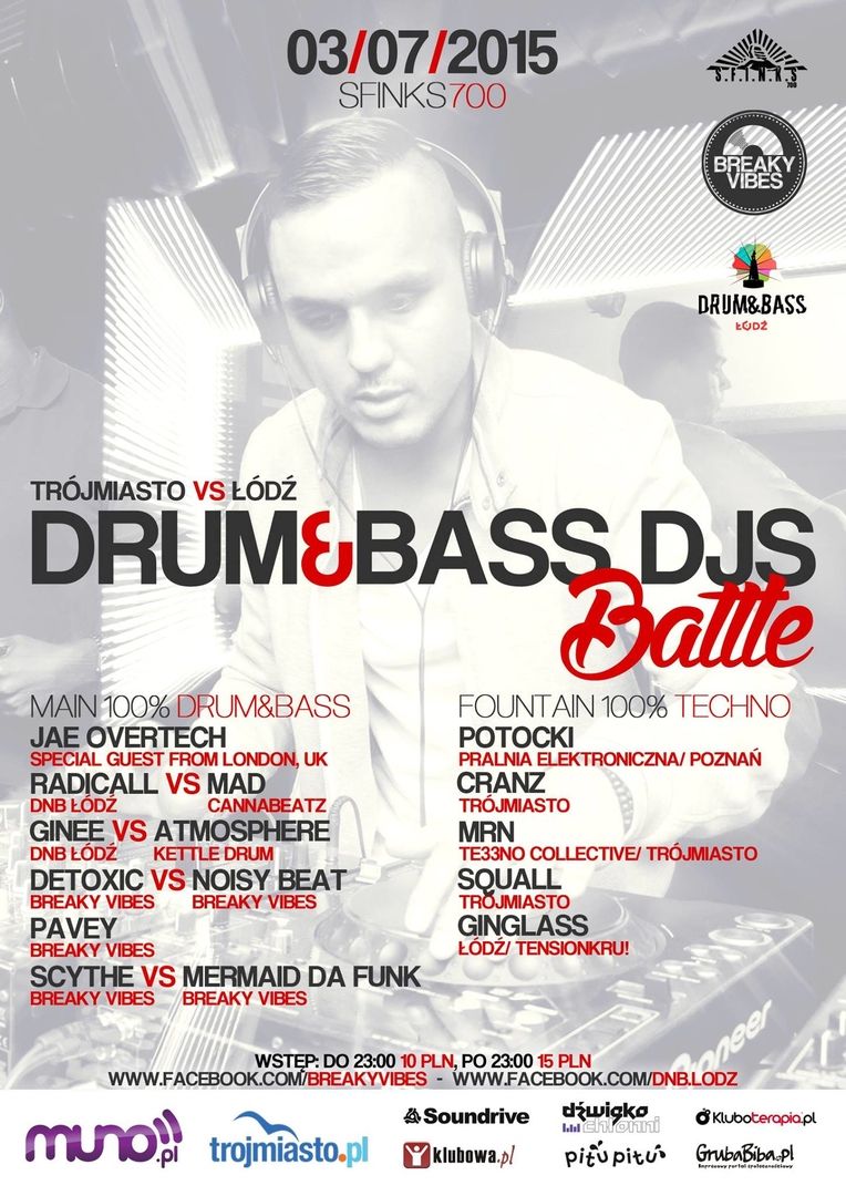 Drum@Bass Djs Battle to wydarzenie, które stawia na wysoką kulturę miksowania i bardzo klasyczne podejście do muzyki drum&bass. W klubie Sfinks700 pojawią liderzy muzyki drum&bass prosto z Łodzi, by stanąć do „walki” z reprezentantami Trójmiasta w tymże gatunku.