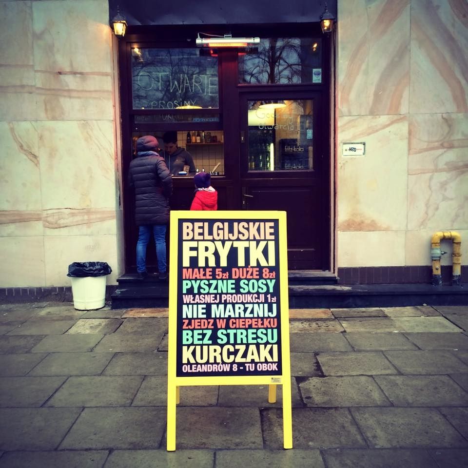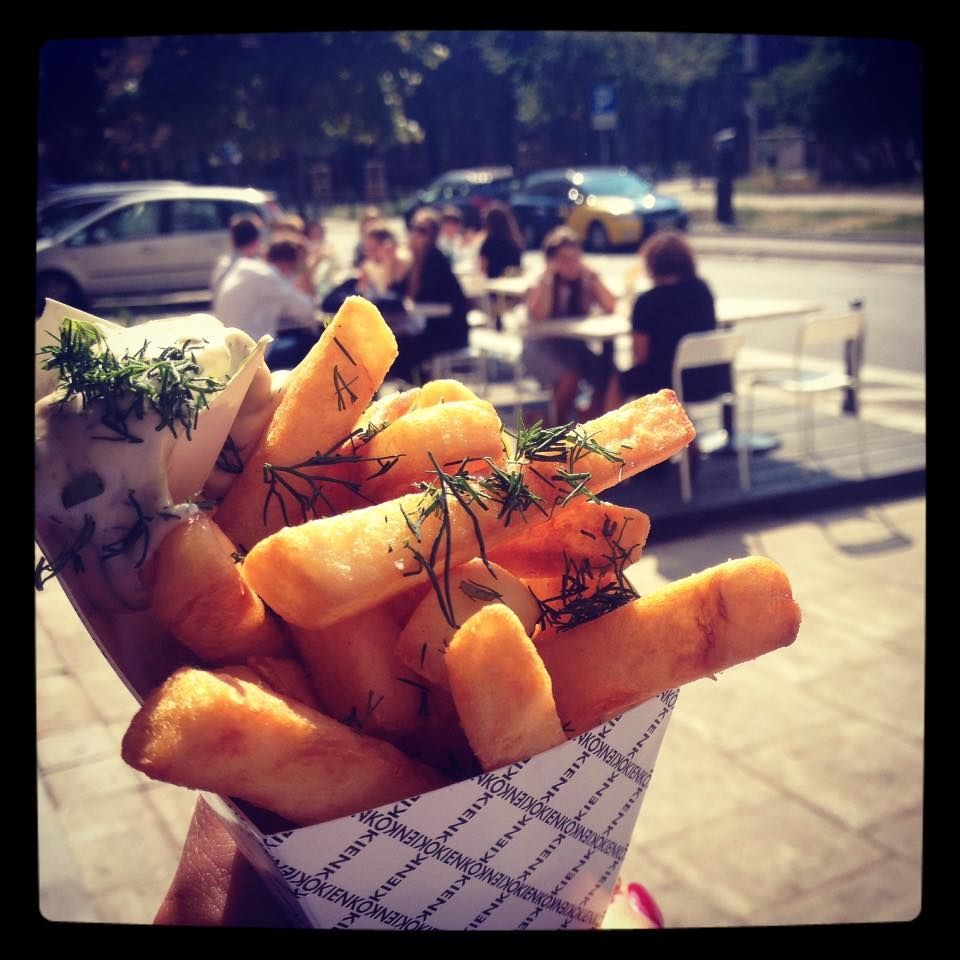 Belgijskie frytki smażone na oleju roślinnym najwyższej jakości, z całą kolorową gamą oryginalnych sosów domowej roboty, przygotowywanych każdego dnia rano ze świeżych warzyw i ziół.