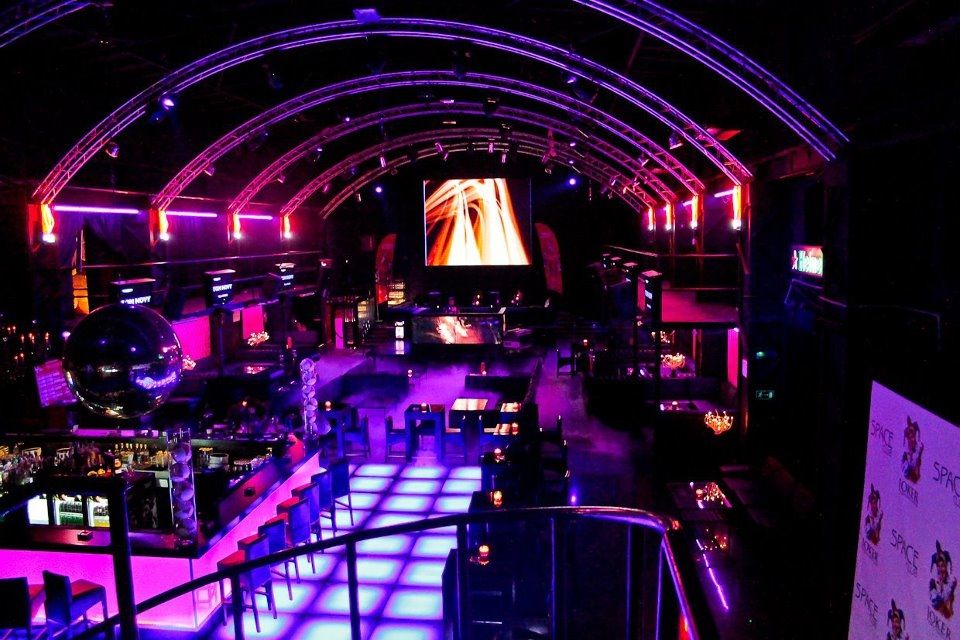 Space opened its doors in October 2006. The venue has three rooms: main dancefloor, VIP area and the red room (no smoking area). Each room has an individual sound system. The club can hold over 1000 party people on its total area of 1700 m2.