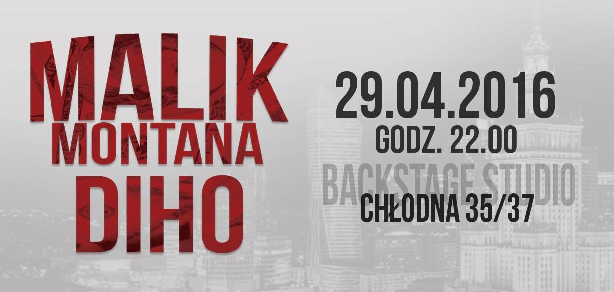 Już 29 kwietnia po raz pierwszy w Warszawie mamy przyjemność zaprosić na występ Malik Montana , który zaprezentuje nam materiał z świetnie przyjętego wydawnictwa„Haram Masari”.Na scenie towarzyszyć będzie oczywiście Diho a za gramofonami odpowiedzialny również za after party Dj Frodo czyli 1/2 trapowego duetu MXF .