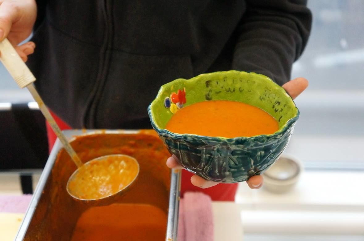 Codziennie polewamy 10 zup, w tym 8 innych każdego dnia oraz 2 stałe klasyki – krem z pomidorów i pikantną zupę meksykańską.
